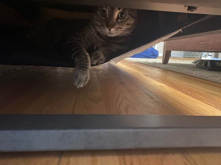 «Оказывается, мой кот проделал дырку в дне дивана, и теперь это его гамак»