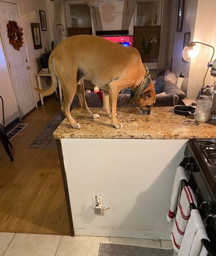 И ведь кто-то же научил его тайком забираться на кухонный стол, когда никого нет!