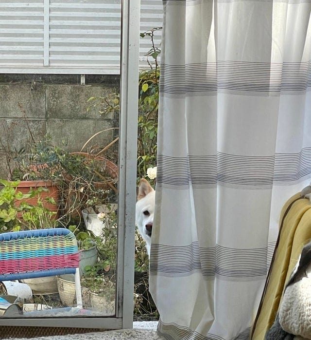 Песик наблюдает из-за угла и не подозревает, что зеркало раскрыло его позицию