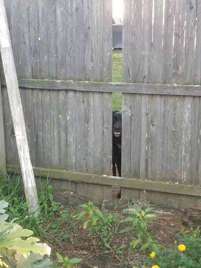 Заботливые хозяева сделали дырку в заборе специально для этого парня