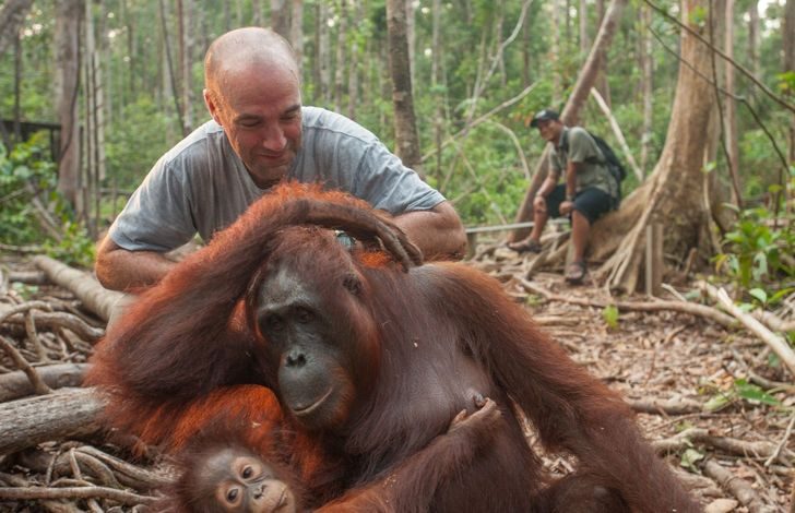 Еще одной удачей фотографа стали снимки орангутанов в Индонезии