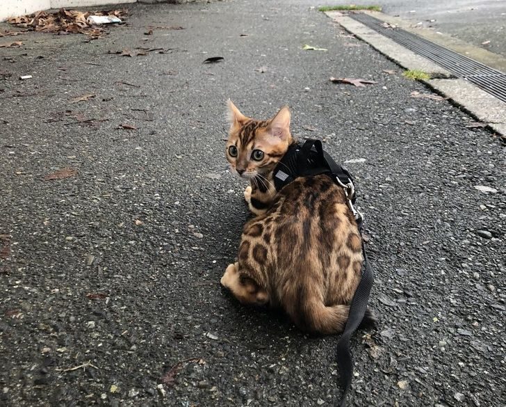 «Ездили на поезде с Алтая на Урал. На одной из остановок вышли прогуляться. Кошка первый раз в сознательном возрасте вышла из квартиры на траву»