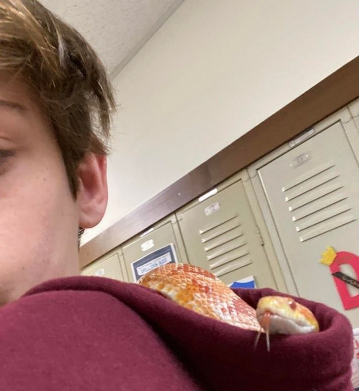 «Чешуйчик снова залез в мою толстовку. Семья его не любит, и мне приходится ходить с ним в школу»