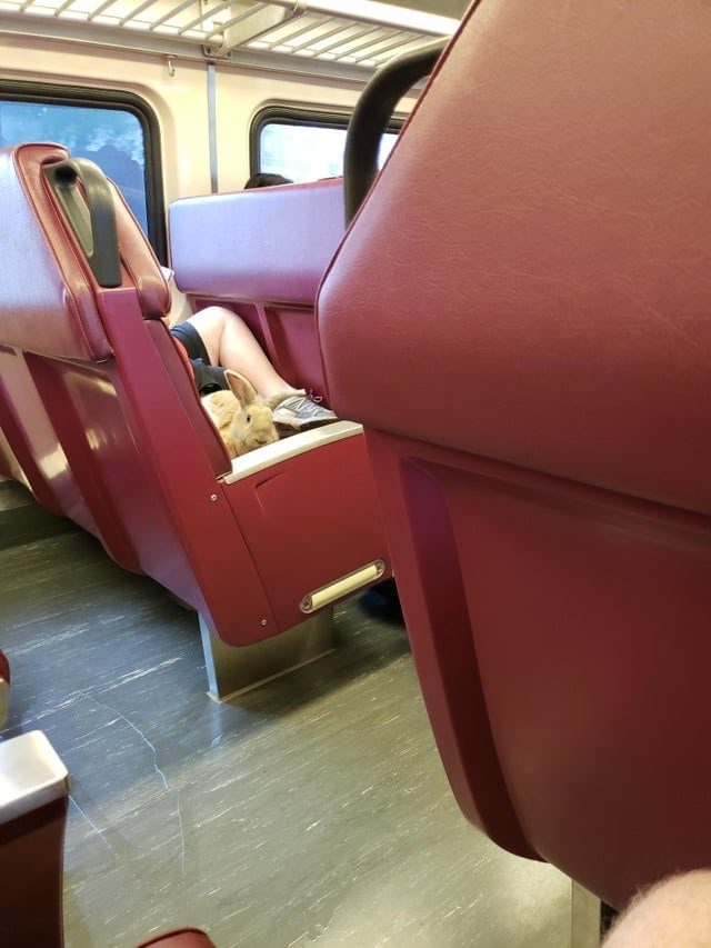 Кролик в поезде. Вот так встреча! Едет в какие-то прекрасные места, наверное.