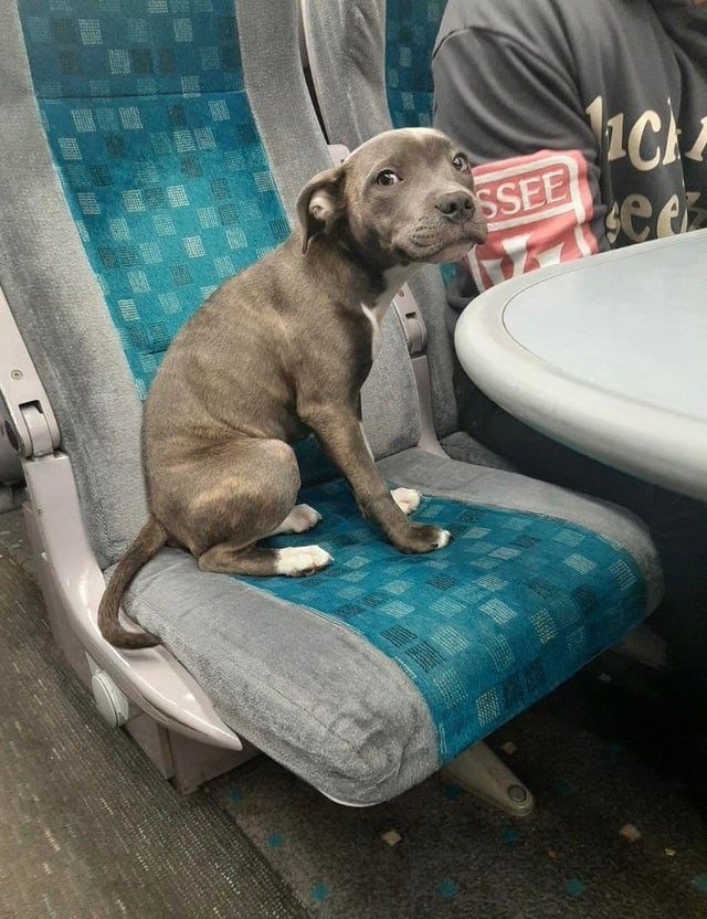 Щенок Афина изо всех сил делала вид, что ей вовсе не страшно ездить на поезде