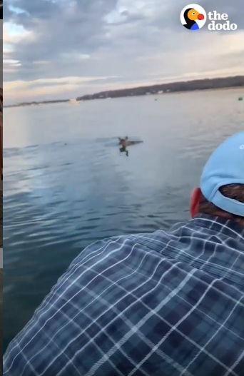 Людям снова пришлось прийти к ней на помощь. Волонтер повторил трюк с распластыванием по носу лодки. Он снова потянулся к лани, уговаривая ее не бояться, ласковым голосом объясняя ей, что все будет хорошо. Неизвестно, подействовали ли уговоры, или сработала случайность, но парню удалось поймать лань за шею одной рукой. Он не собирался вытаскивать ее на лодку — она была слишком тяжелая и беспокойная. Но он придержал ее, прижимая к носу лодки — ей оставалось только перебирать ногами, чтобы держаться на воде, а курс задавали люди.