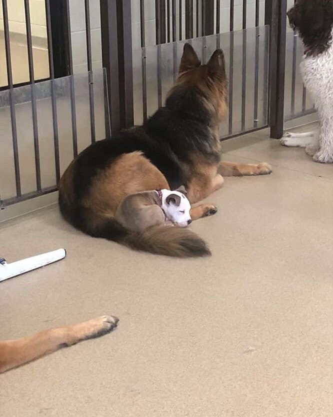 Примечательно, что большие грозные псы совсем не против такого близкого соседства. Не жалуются и собаки поменьше, хотя они не сильно превышают Эдну по величине. Теперь, когда она подросла, некоторым приходится совсем нелегко.