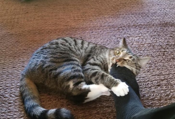 Попытка объяснить коту, что кусаться нельзя, провалилась