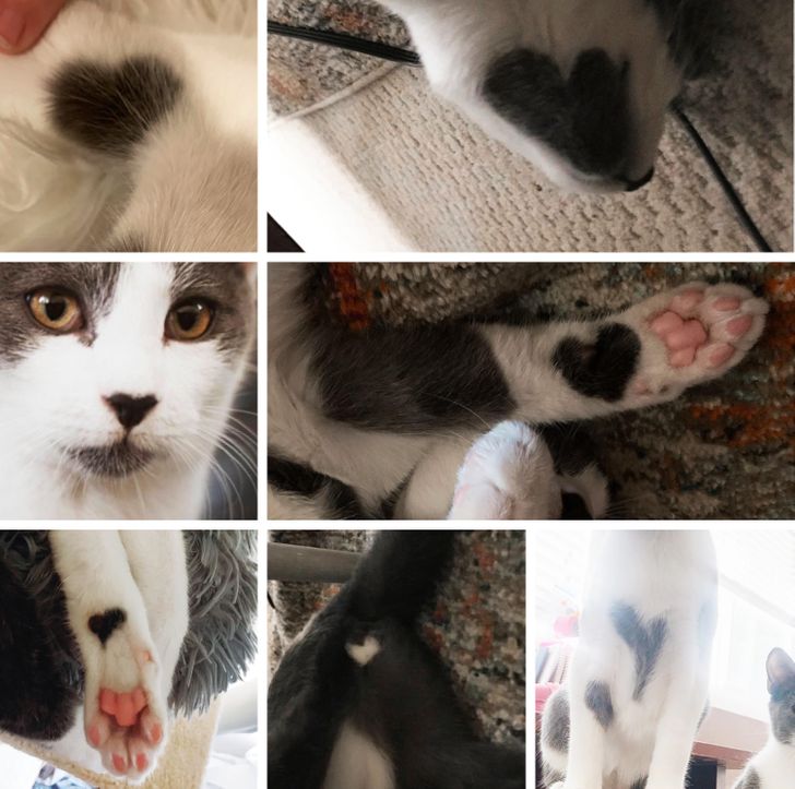 1. «На прошлой неделе мы взяли 2 котят. Дома обнаружили, что у одного окрас с сердечками. Это Ривер, червонный король»