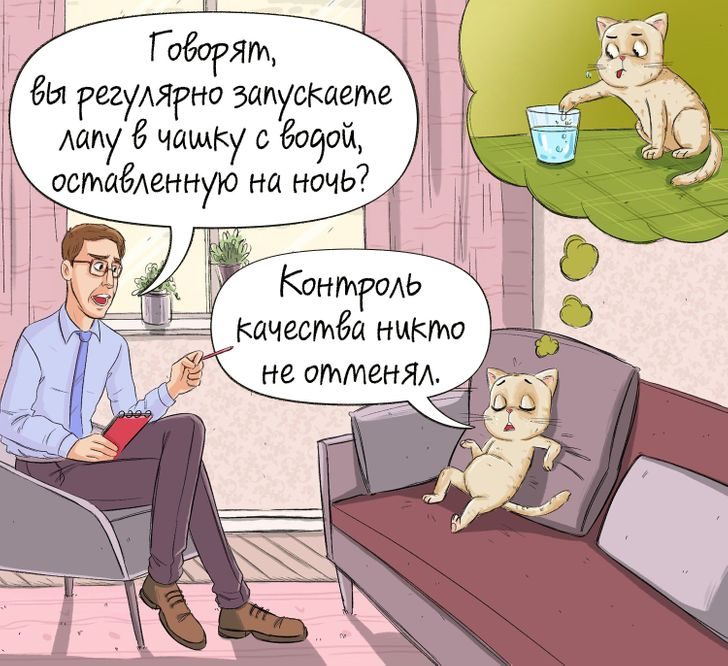 У домашних питомцев наверняка накопилась уйма претензий к человеческому роду. Кто фотографирует их, пока они спят? Кто отказывается кормить их по 10 раз на дню? Кто не дает им пить воду из кружки и запрещает тыгыдыкать по ночам? Окажись пушистые хвостики на приеме у психолога, они бы поведали о людях такие истории, что хватило бы на несколько терапевтических сеансов.