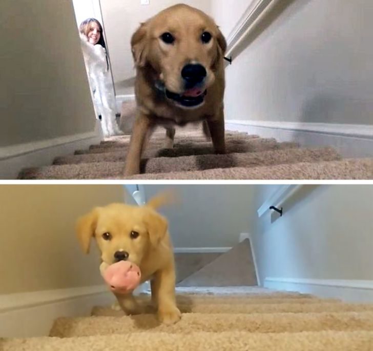 «Локи исполнился год, и он все так же таскает свою любимую игрушку наверх»