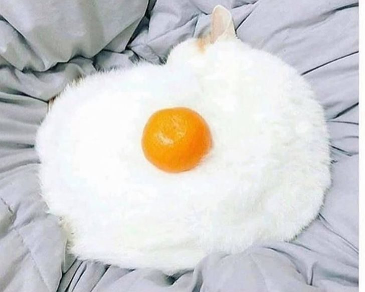 Лайфхак: у вас есть белый кот? Положите на него мандарин, чтобы он выглядел как яичница