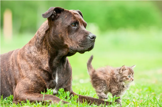 Питбуль привел домой беременную кошку и помог ей родить