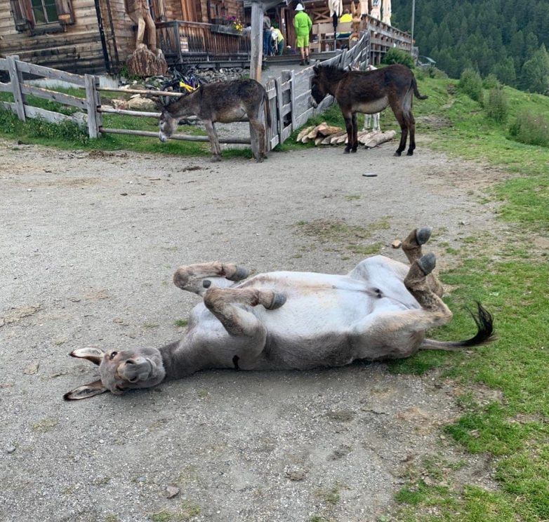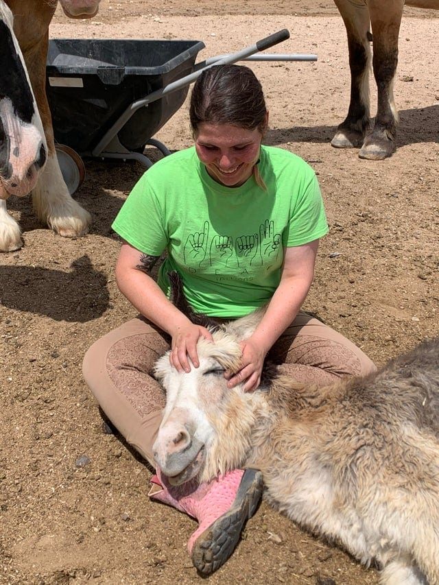 Ослик, которого спасли во время наводнения, чрезвычайно рад этому