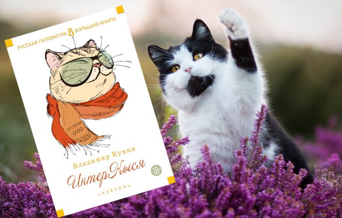 «ИнтерКыся», Владимир Кунин.В этом произведении главным героем является кот Мартын, сосуществующий на одной жилплощади со своим хозяином-писателем. А кот так харизматичен и храбр, что не влюбиться в него совершенно невозможно. Он умён и находчив, смел и благороден, а ещё – склонен к авантюрам и очень влюбчив.