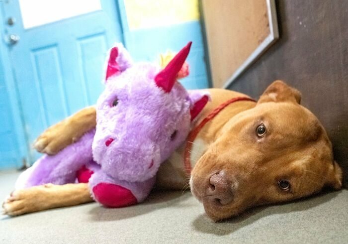 Однако на этом история питбуля не закончилась. Пост о Сису в соцсети стал вирусным (его опубликовали сотрудники приюта) и пес обзавелся множеством поклонников. В итоге Сису усыновили вместе с его любимой игрушкой, и теперь у питбуля и его друга-единорога, наконец, есть дом и любящие владельцы.