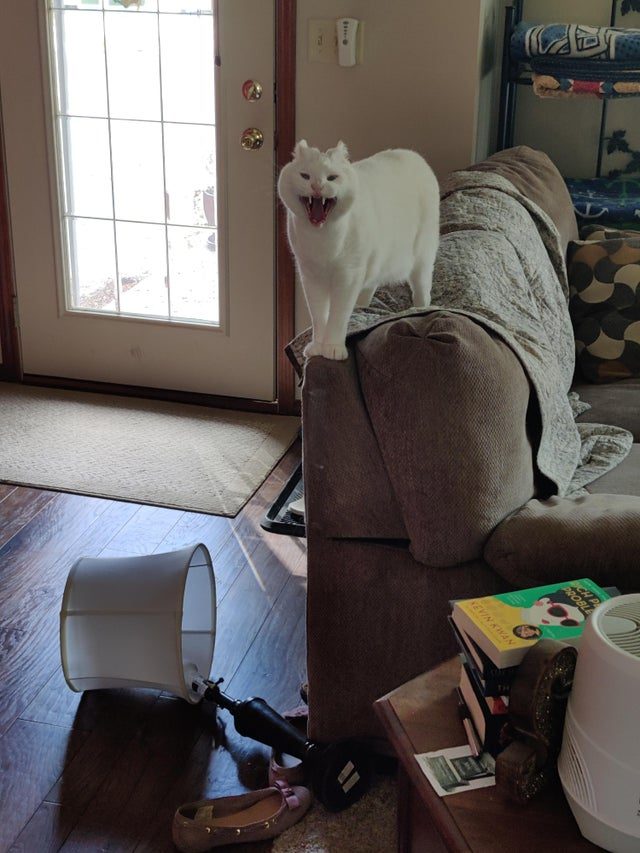 Сбросил лампу на пол и оповещает весь дом об этом происшествии