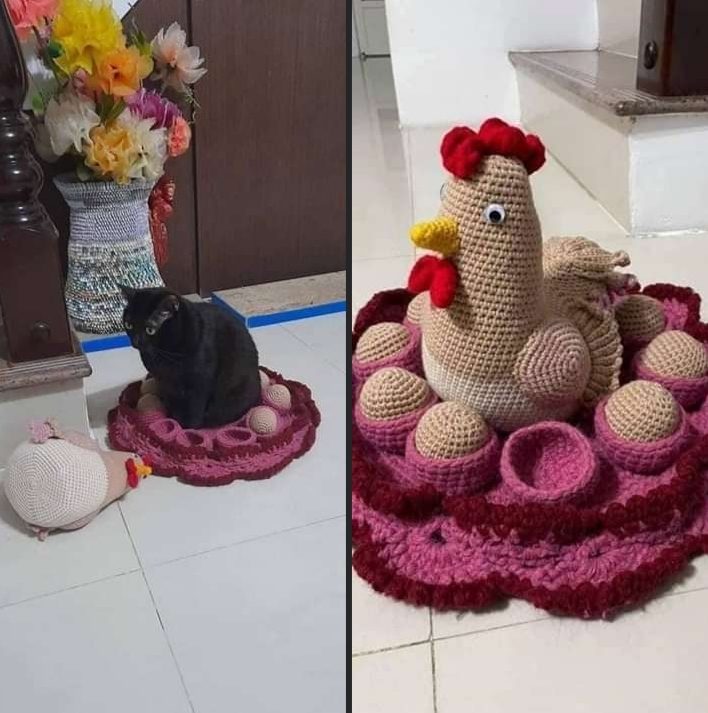 Делает вид, что не понимает, как курица там оказалась