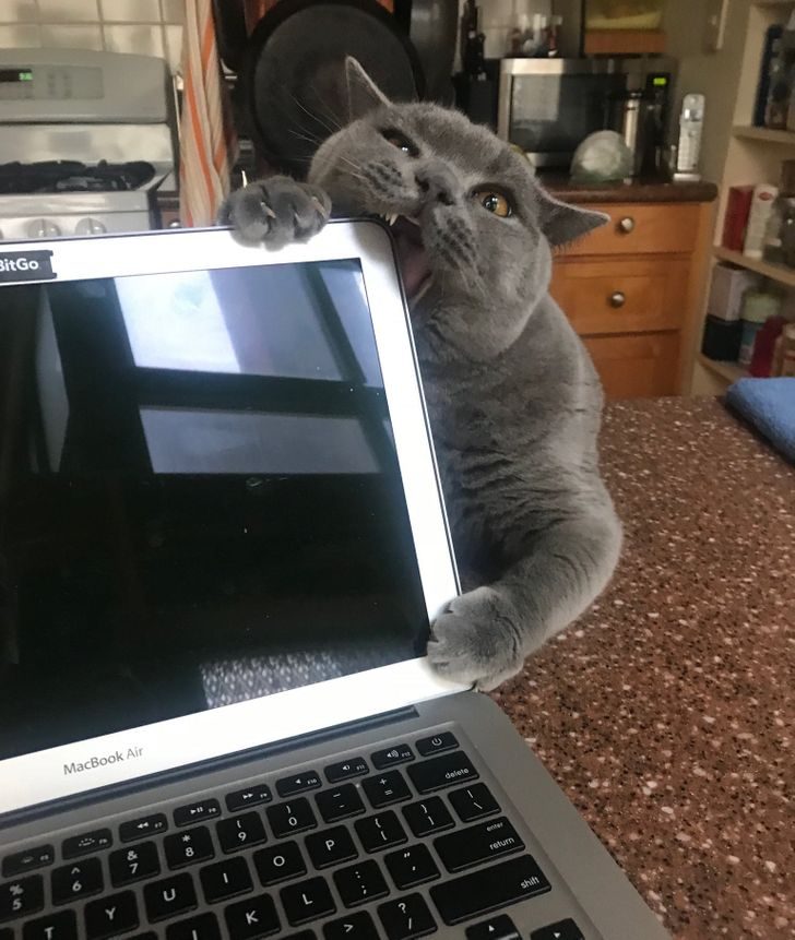 Кот быстро просек, кто его главный конкурент за внимание хозяйки дома, и решил наказать обидчика