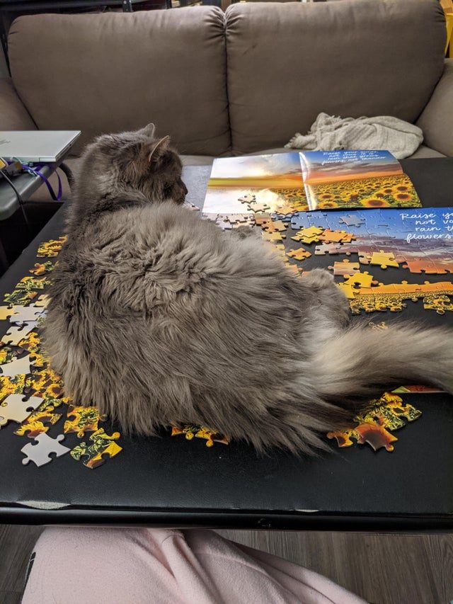 Я принялся собирать пазл, потому что моя кошка лежала на клавиатуре и блокировала доступ к компьютеру. Отошел за чаем и вот…