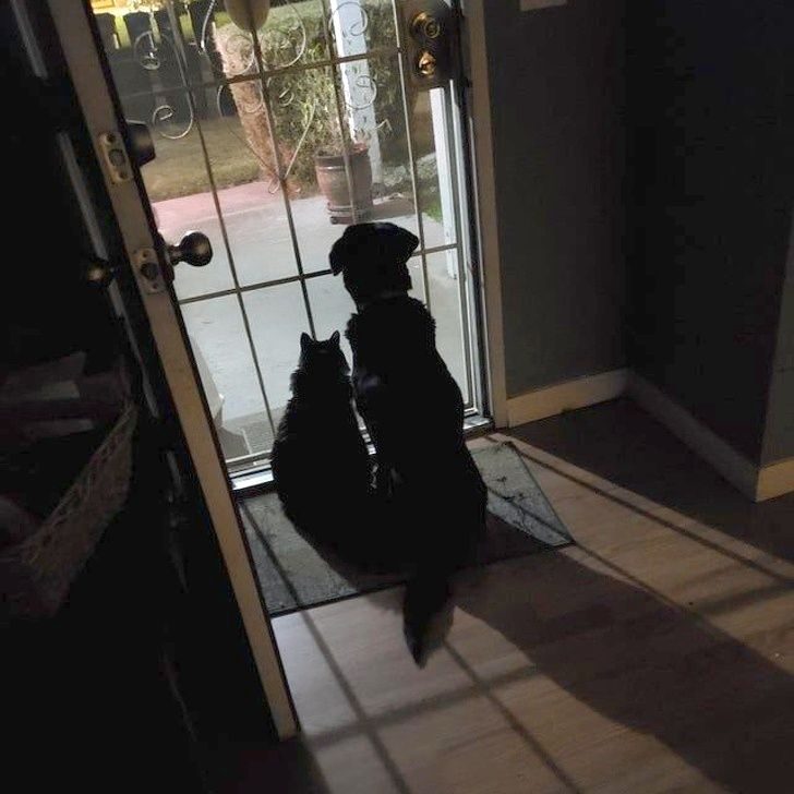 «Сын всегда предупреждает, когда собирается домой. Я открываю входную дверь, и таким образом его 17-летний кот и 16-летний пес понимают, что он скоро придет. Вот так они и сидят в ожидании»