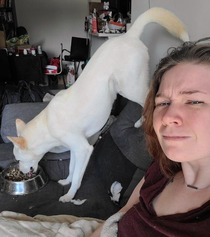 «Сын спас кота и собаку, когда те были совсем крохами. Теперь они оба уже старые, плохо видят и слышат, но каждый вечер с нетерпением ждут возвращения хозяина. Он всегда дарит вкусняшки и обнимашки».