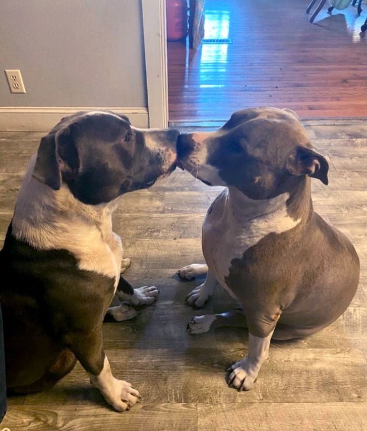 «Мой пес отдает печеньку своему сыну. Он думал, что малому ничего не достанется, и стоял здесь, пока я не открыла дверь. Я рыдаю»