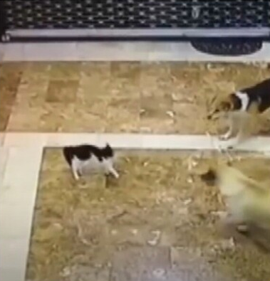 Мать-кошка против трёх собак