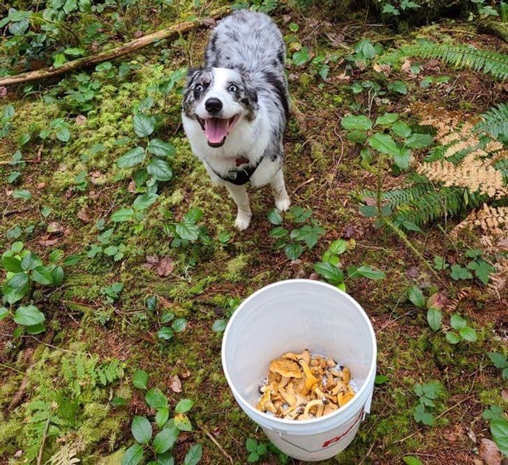 «Моя любимая фотография нашей собаки после целого дня охоты за грибами»