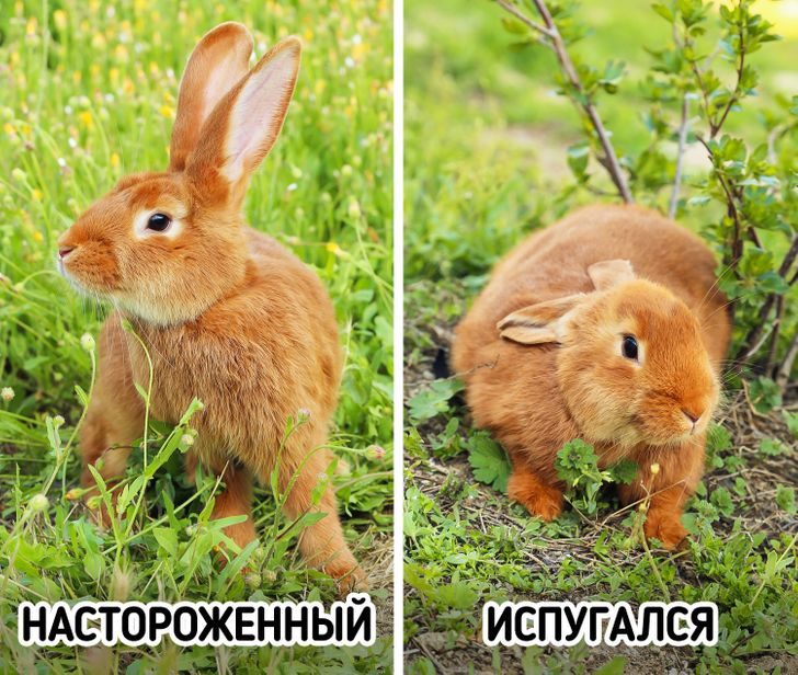 Когда кролики боятся, они прижимают уши, прижимаются к земле, могут повизгивать, кряхтеть (притом что кролик обычно издает мало звуков), тяжело дышать, стучать по земле задними лапами.Хомяки при ощущении опасности зарываются в норку, а если такой возможности нет, то сильно раздувают щеки, дрожат и могут даже притворяться мертвыми.