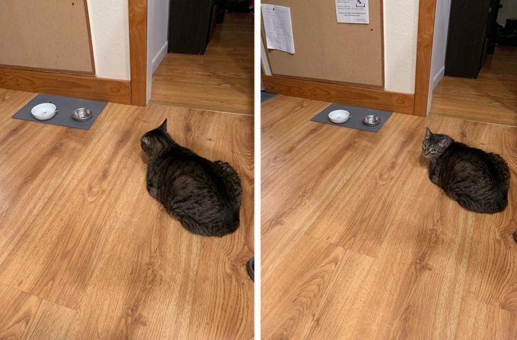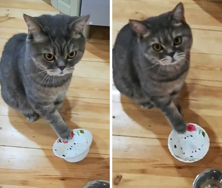 Хорошо, что моя кошка не знает этот трюк!«Вообще-то, я не наелся!»