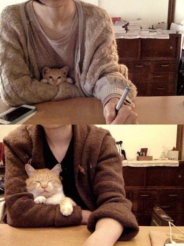 Еще котенком он очень любил работать вместе с женой, так продолжается и по сей день