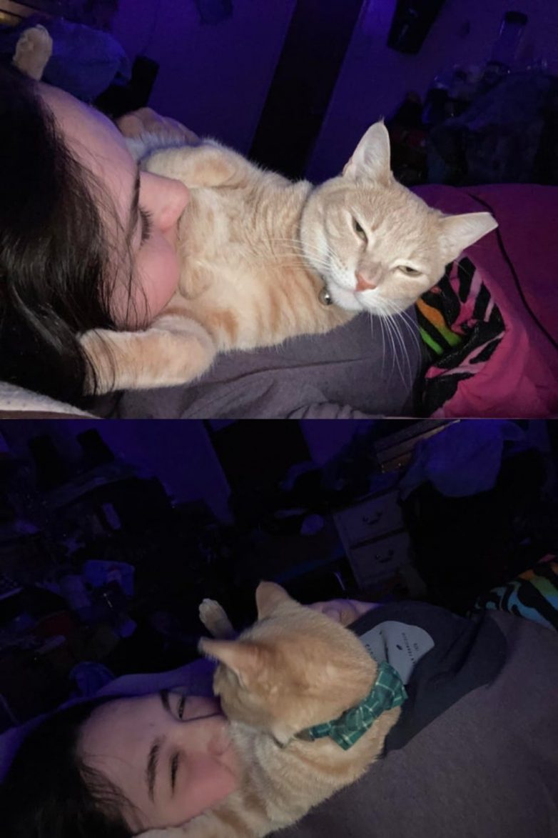 Источник: Green_Potata / redditВсе началось с того, что она позволила котеночку спать на кровати…