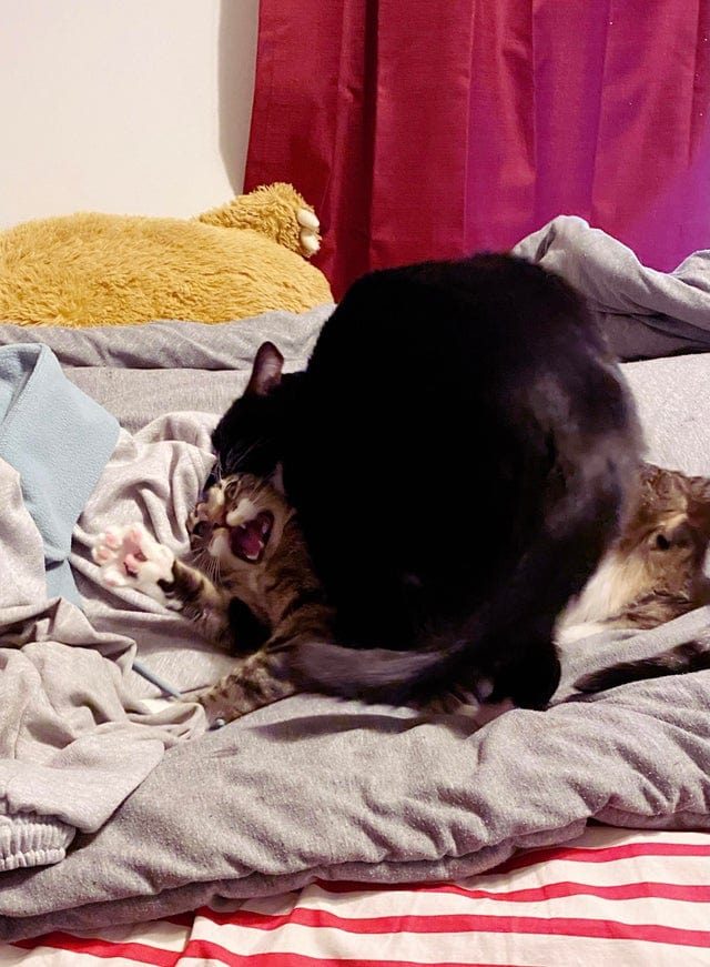 Она воспользовалась разницей в габаритах и просто задавила кота массой