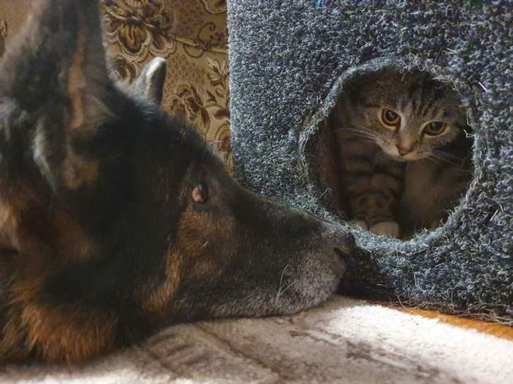 «Моя соседка на днях нашла бездомную кошку и беспокоилась, как она уживется с ее собакой. Я бы сказал, что у них все в порядке»