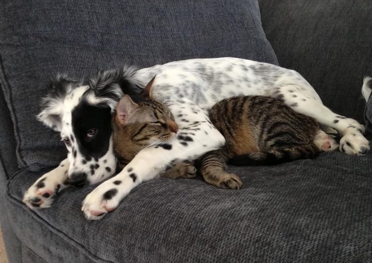 «Моя подруга завела кошку, и ее собака сразу усыновила ее. Они всегда так спят»