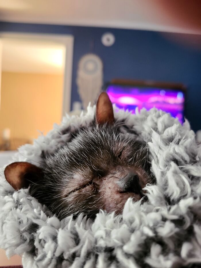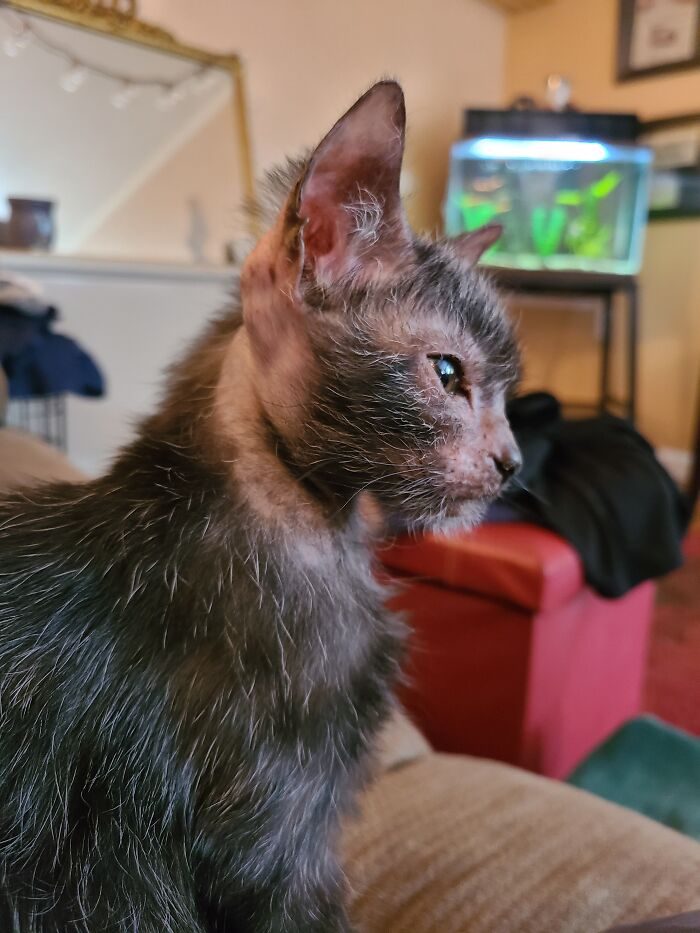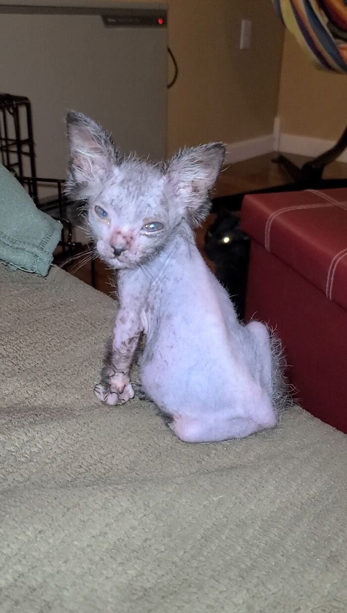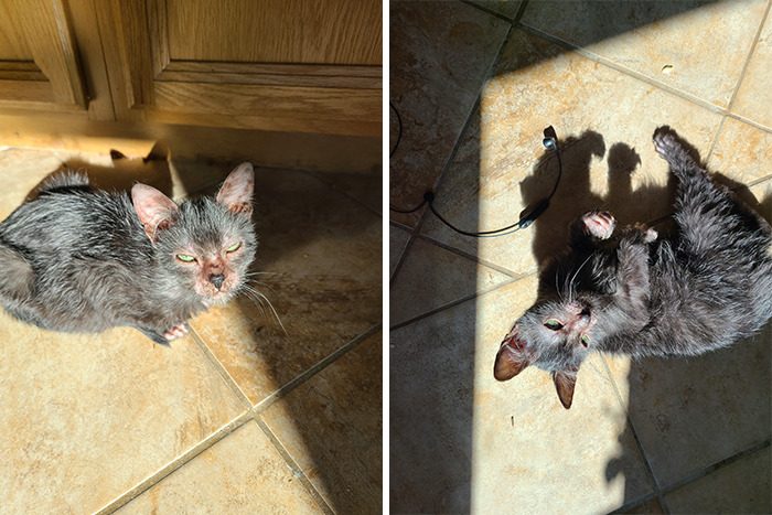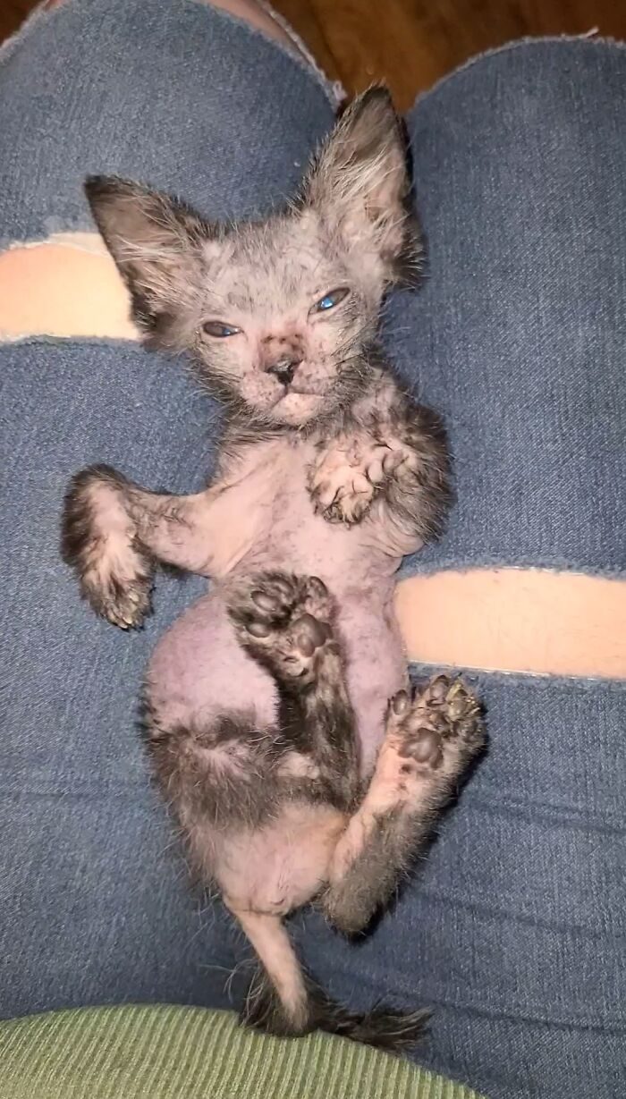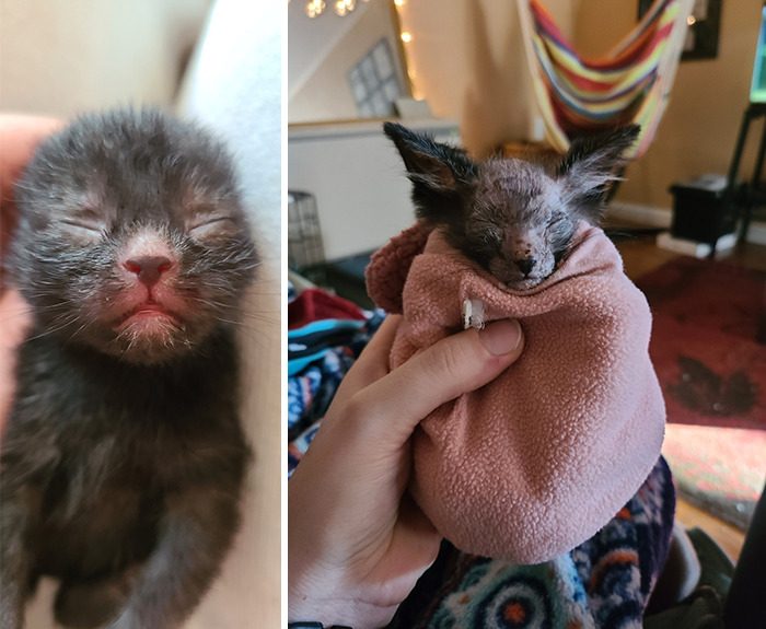 «Когда шерсть стала отрастать, я действительно не могла ничего понять, котёнок выглядел настолько странно, что совсем не был похож ни на своих братьев и сестёр, ни на свою маму»