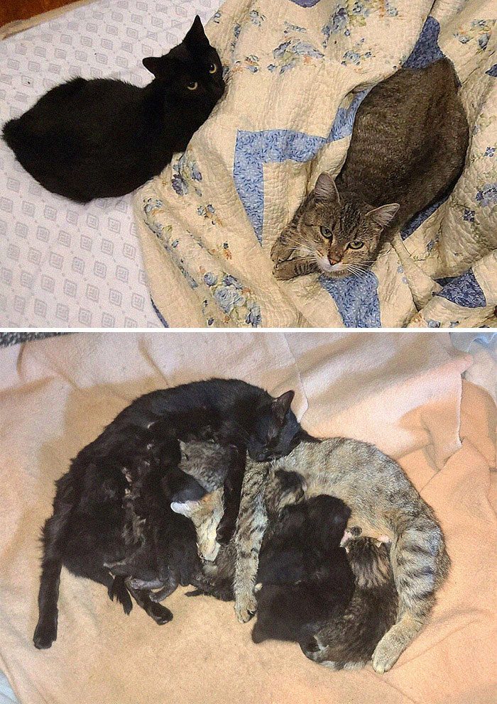 «Я решила помочь двум бездомным беременным кошкам, которые вместе жили на улице», — сказала хозяйка Грейси по имени Бри из штата Мэн, США