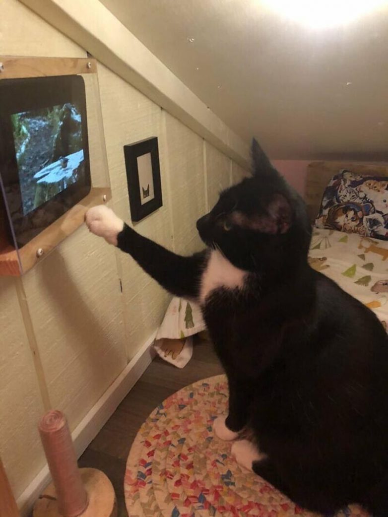 Наблюдать за животными из окна — любимое занятие Вятта, поэтому в холодное время года прекрасной альтернативой является «кошачий телевизор»