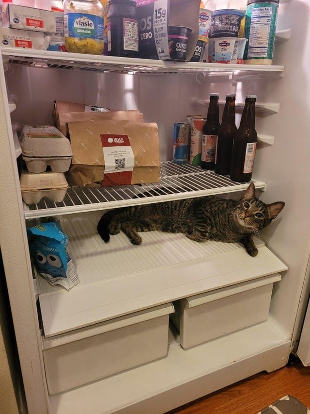 Стоило поставить обратно в холодильник свежевымытые полки, как это линяющий источник шерсти тут как тут!