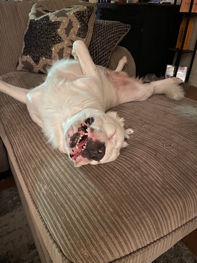 Никогда человеку не понять, насколько собаке удобно так спать!