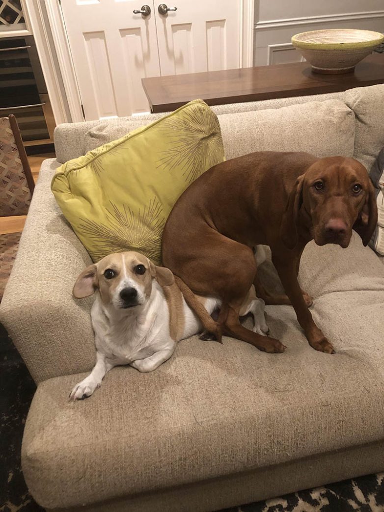 Как мило, что второй песик не против, когда на нем сидит его друг
