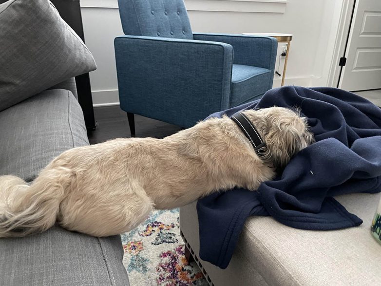 “Моя собака любит спать на своих задних лапах”