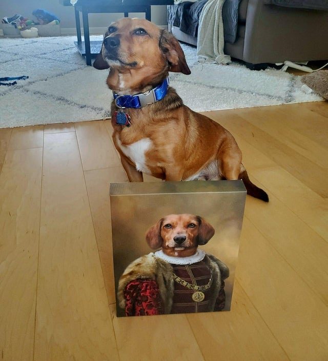 Пес Олли не может понять, радоваться ему портрету или обижаться