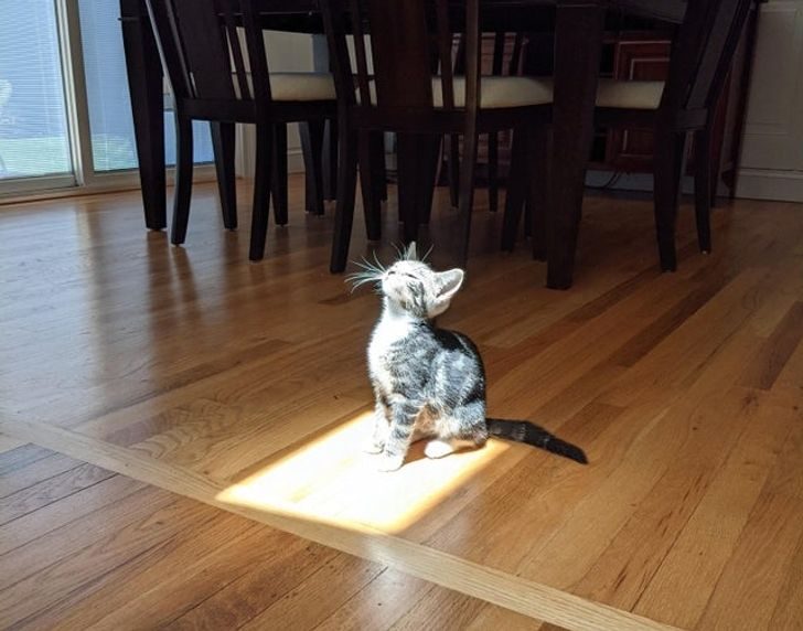 19. «Первая встреча моего нового котенка с большим огненным шаром в небе»