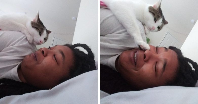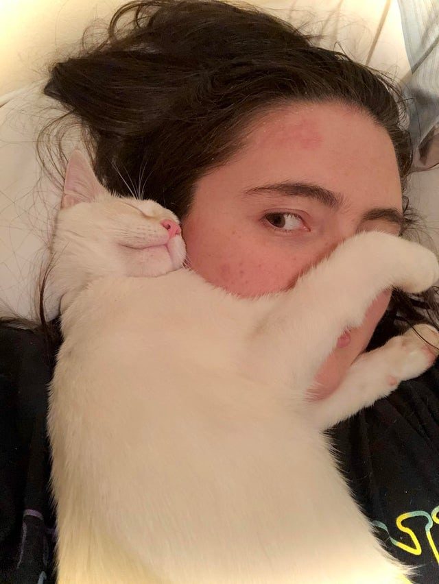 Кошечка принципиально отказывается спать где-либо, кроме лица хозяйки