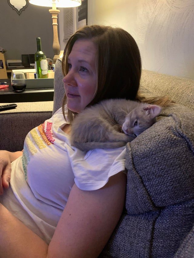 Если котенок уснул на коленях, будить его нельзя. Нужно сидеть максимально неподвижно.