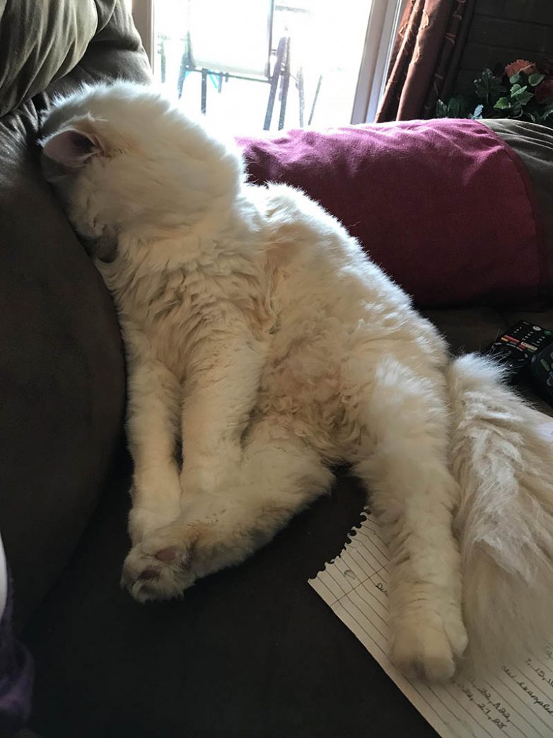 Кошка, которая освоила новую позу для сна