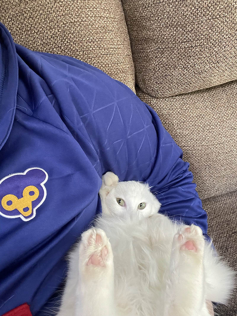 Вот так моя кошка помогает мне на кухне. Сейчас мы складываем полотенца.