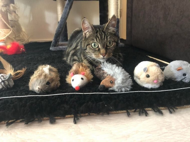 У Кисы так много игрушек, что она частенько не может решить, с какой из них её поиграть